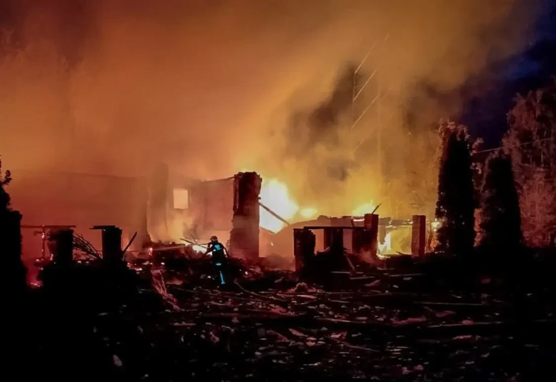 На опубликованных украинской Государственной службой чрезвычайных ситуаций снимках видны сильные разрушения и пожар на месте прилётов.