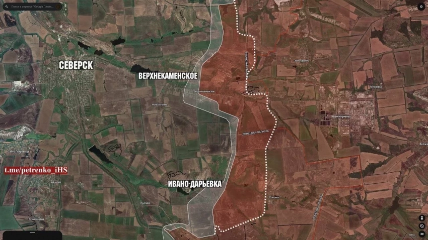 На северском направлении (ДНР) российские войска продвинулись широким фронтом на участке площадью до 26.2 км² и закрепились в центральной части Верхнекаменского.