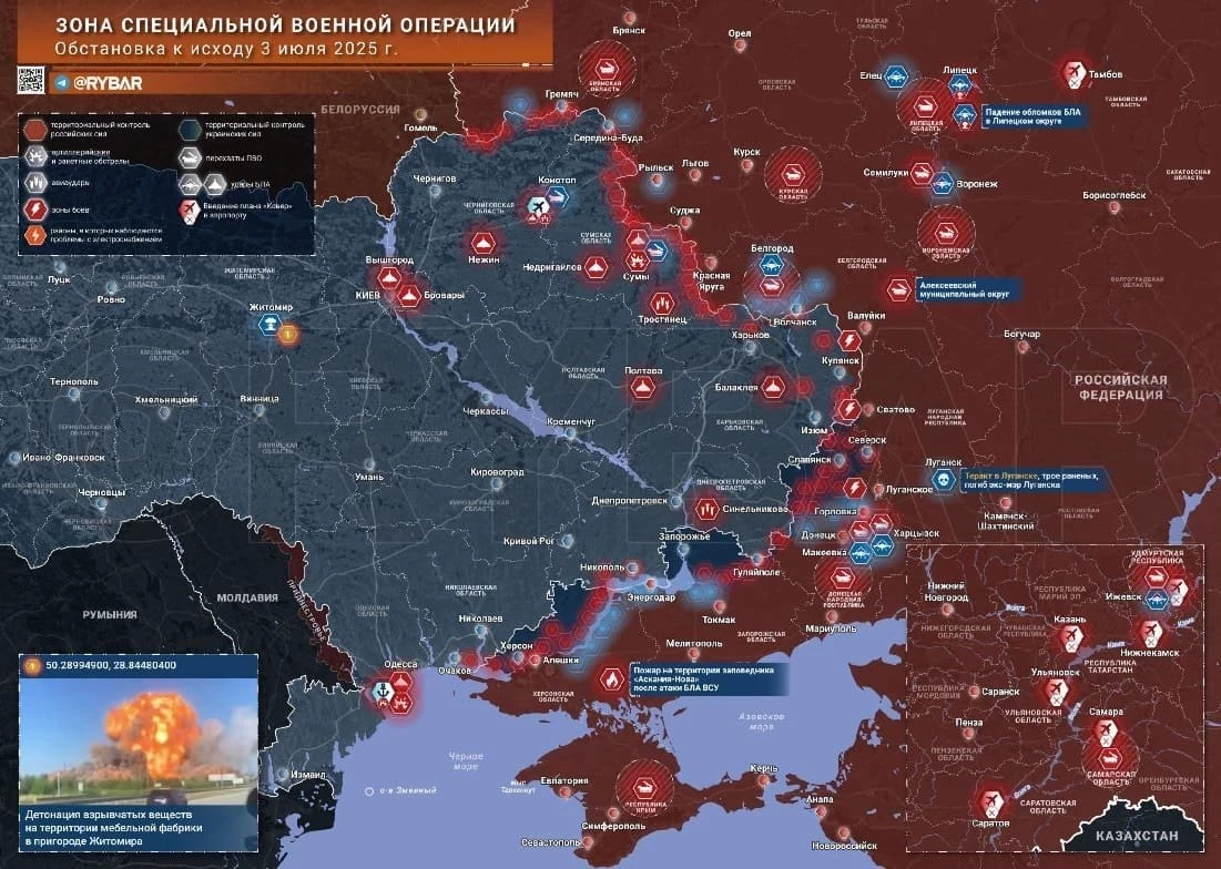 Карта боевых действий на Украине. Обстановка в зоне СВО на 04.07.2025
