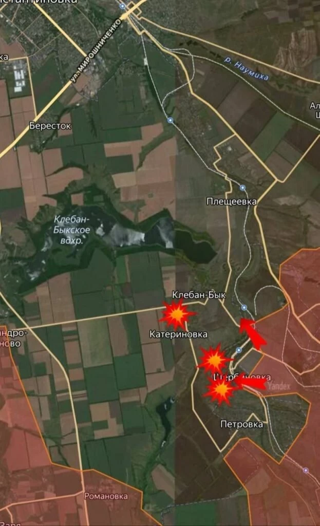 На Торецком направлении идут ожесточённые бои за Яблоновку и Александро-Калиново. На севере российские части обходят шахту Святой Матроны и продвигаются к Клебан-Быкскому водохранилищу. Цель - отрезать гарнизон противника между водоёмом и Александро-Калиново.