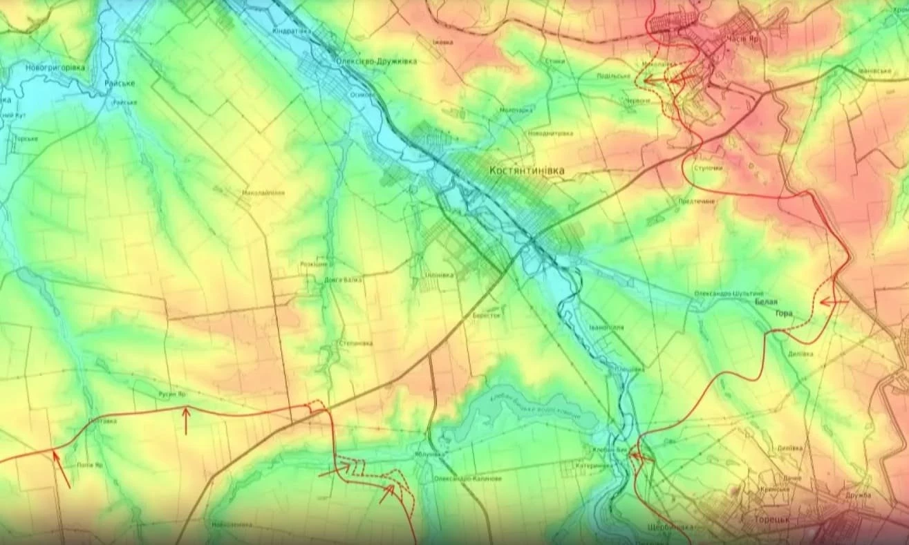 На Константиновском направлении российские части продолжают вести ожесточённые бои с украинскими войсками за Яблуновку, а также на подступах к Александро-Калиново есть тактические успехи, как в первом, так и во втором случае, но пока противник удерживает стратегическую дорогу, по которой питает свою группировку в районе Щербиновки и Петровки.