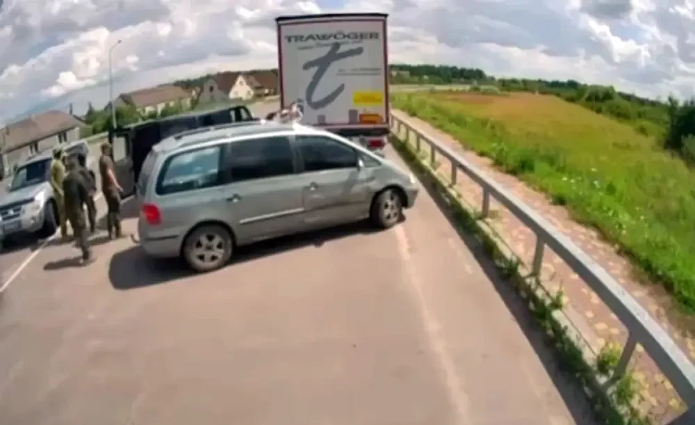 Забавный, но примечательный эпизод был заснят на камеру дорожного наблюдения. Сотрудники ТЦК на двух автомобилях на трассе настигли и остановили минивэн, намереваясь как минимум вручить повестку водителю или пассажиру, а скорее всего сразу отвезти на пункт сбора с последующим зачислением в ряды ВСУ и отправкой на фронт.