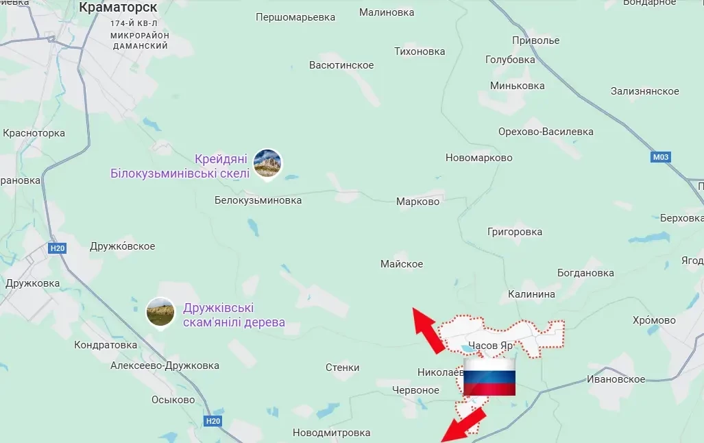 В результате выхода подразделений российской армии юго- и северо-западнее Часова Яра сократилось расстояние до Константиновки и Краматорска. До первого из названных городов расстояние составляет менее 5 км, до второго - около 16 км.