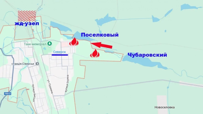 Противник держится за указанный железнодорожный узел, а также за автомобильную дорогу, которая соединяет Северск с Красным Лиманом и Славянском. Это дорога Т0513. Взятие её под огневой контроль способно лишить Северский гарнизон ВСУ значительной части снабжения.
