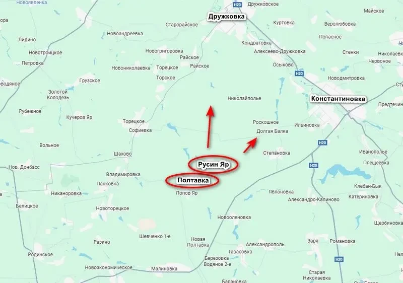 Взятие под контроль Полтавки и Русина Яра к западу от Константиновки открыло ВС РФ дорогу на Дружковку