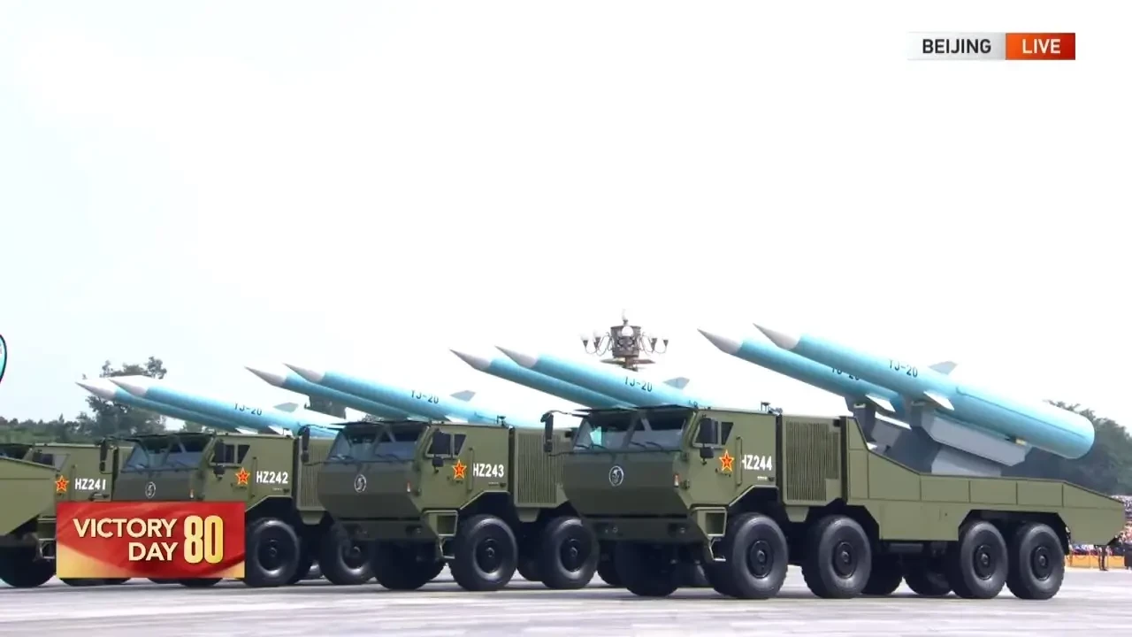 3 сентября в Пекине состоялся военный парад, посвящённый 80-летию окончания Второй мировой войны. По площади Тяньаньмэнь торжественным маршем прошли военнослужащие Народно-освободительной армии Китая. Также состоялся проход крупной механизированной колонны и пролёт авиации. В ходе парада НОАК показала свою современную материальную часть всех основных классов. При этом некоторые образцы впервые демонстрировались на публичном мероприятии.