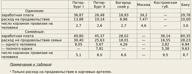 Наилучший обзор данных по бюджетам того времени приведен в работе «Заработная плата русских рабочих в конце XIX — начале XX в.» Вячеслава Волкова и указанной работе Кирьянова.