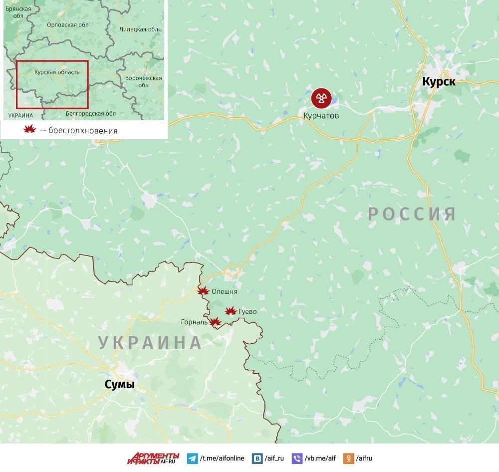 В Олешне бои жёсткие. ВСУ бросают туда подкрепления, цепляются за последний опорный пункт, несмотря на большие потери. После ракетного удара по их позициям уничтожены четыре пункта управления дронами и около 50 солдат. Группировка «Север» освободила Гуево, где враг держался изо всех сил, отправляя туда элитные отряды. Сейчас там добивают остатки ВСУ и вывозят местных жителей, переживших оккупацию.