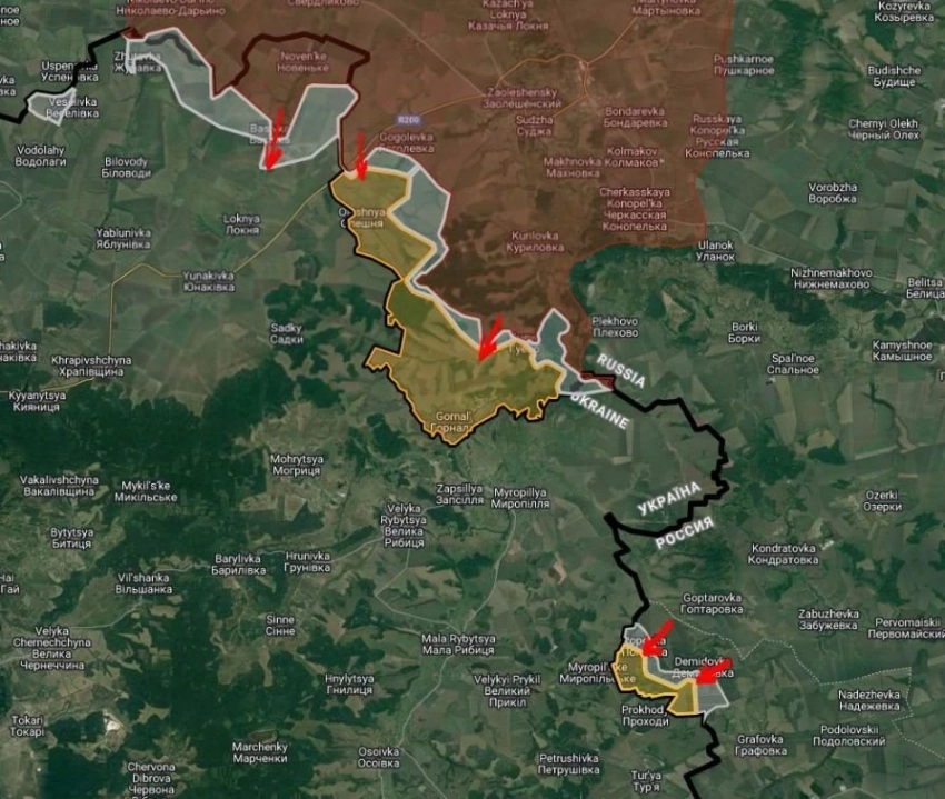 Параллельно продолжается активная фаза боёв в других приграничных районах региона. В частности, в Курской области сохраняется напряжённая обстановка в районе хутора Олешня и села Горналь. По имеющейся информации, украинская сторона организовала оборону на территории Горнальского монастыря, пытаясь удержать высоты и замедлить продвижение российских сил.