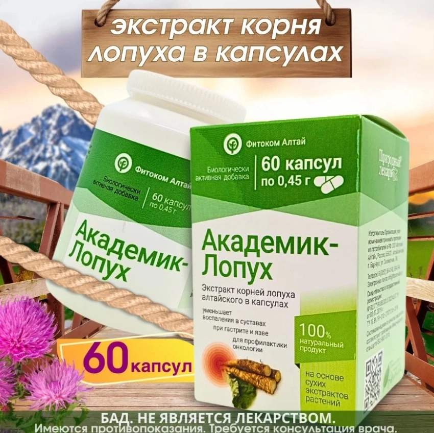 Экстракт корня лопуха от ТМ «Природный лекарь» — не универсальный солдат, но в рейтинг БАДов для суставов и связок вписывается уверенно. Он помогает не только при болях и воспалении в суставах, но и даёт бонусы: нормализует пищеварение, борется с отеками, выводит токсины и поддерживает микрофлору. Простой состав, 60 капсул по 0,45 г, тройной приём в день — и вы будто сбрасываете балласт: интоксикации, «тормозящий» кишечник, ломота. Подходит не всем, но для тех, кто в теме — рабочий вариант из Алтая.
