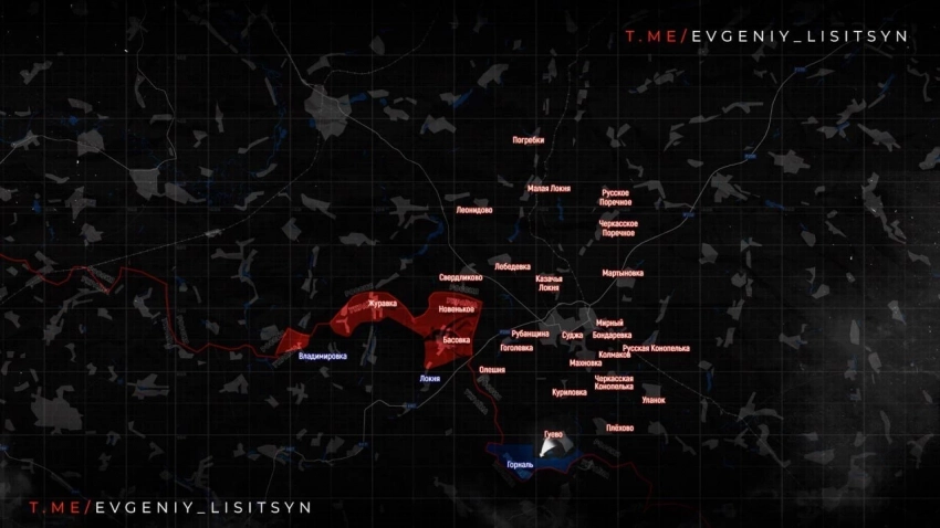 В районе хутора Олешни российские войска продвигаются по лесным массивам и балкам. Враг постоянно подтягивает подкрепления из Сумской области, идут тяжёлые бои. Тем не менее, наши части постепенно зачищают участок вдоль госграницы.