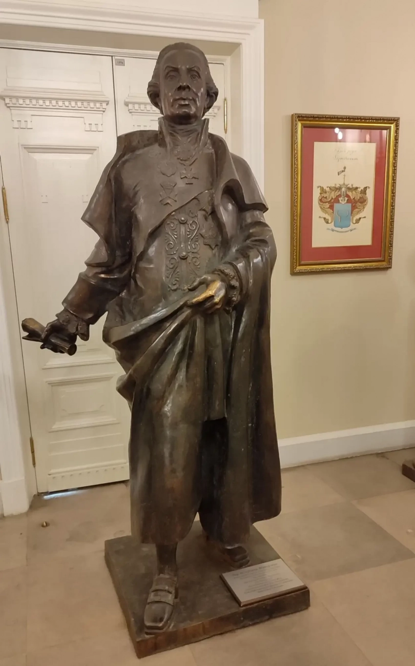 Ею, со словами «Державину от земляков», пополнили экспозицию нынешние земляки Державина — президент Республики Татарстан Рустам Минниханов и компания «Татнефть», выделившая средства. Автором стал ныне покойный легендарный питерский скульптор Вениамин Сидоренко, чуть ли не в одиночку воссоздавший утерянные горельефы Храма Христа Спасителя.