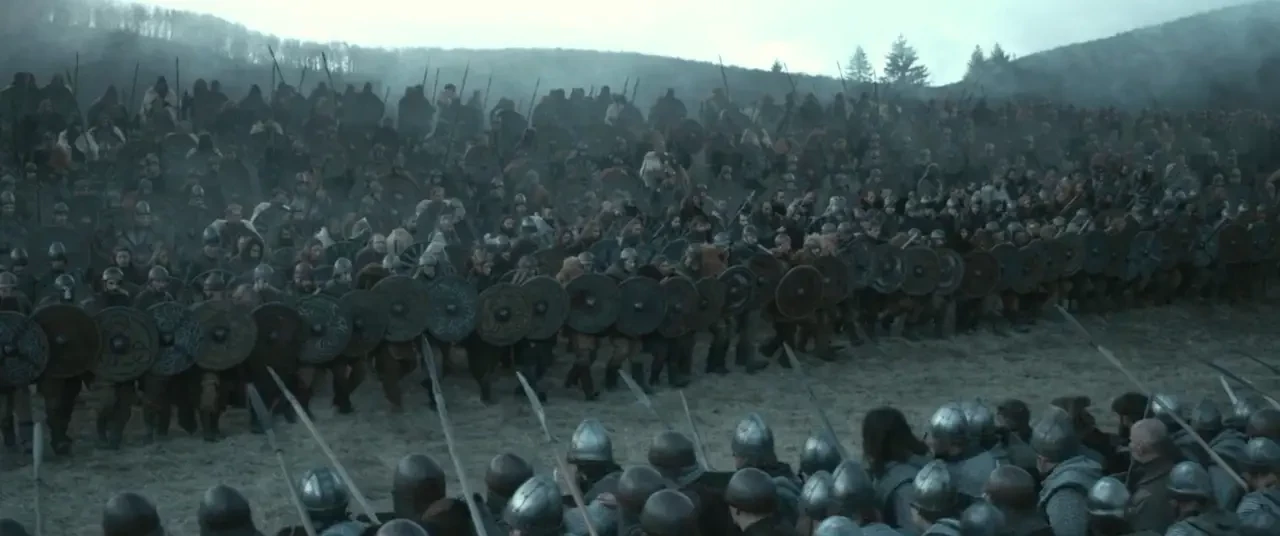 Стена щитов. Кадр из фильма «Семь королей должны умереть». 2023 г.