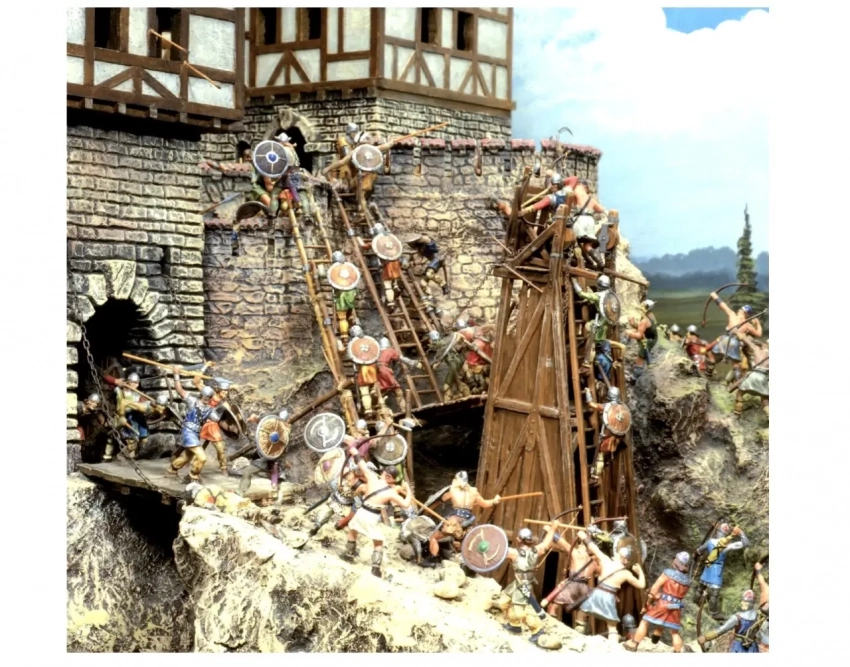 Викинги штурмуют английскую крепость. Фигурки, крепость и осадные машины – компания Elastolin. ФРГ. 80-е гг. ХХ в.