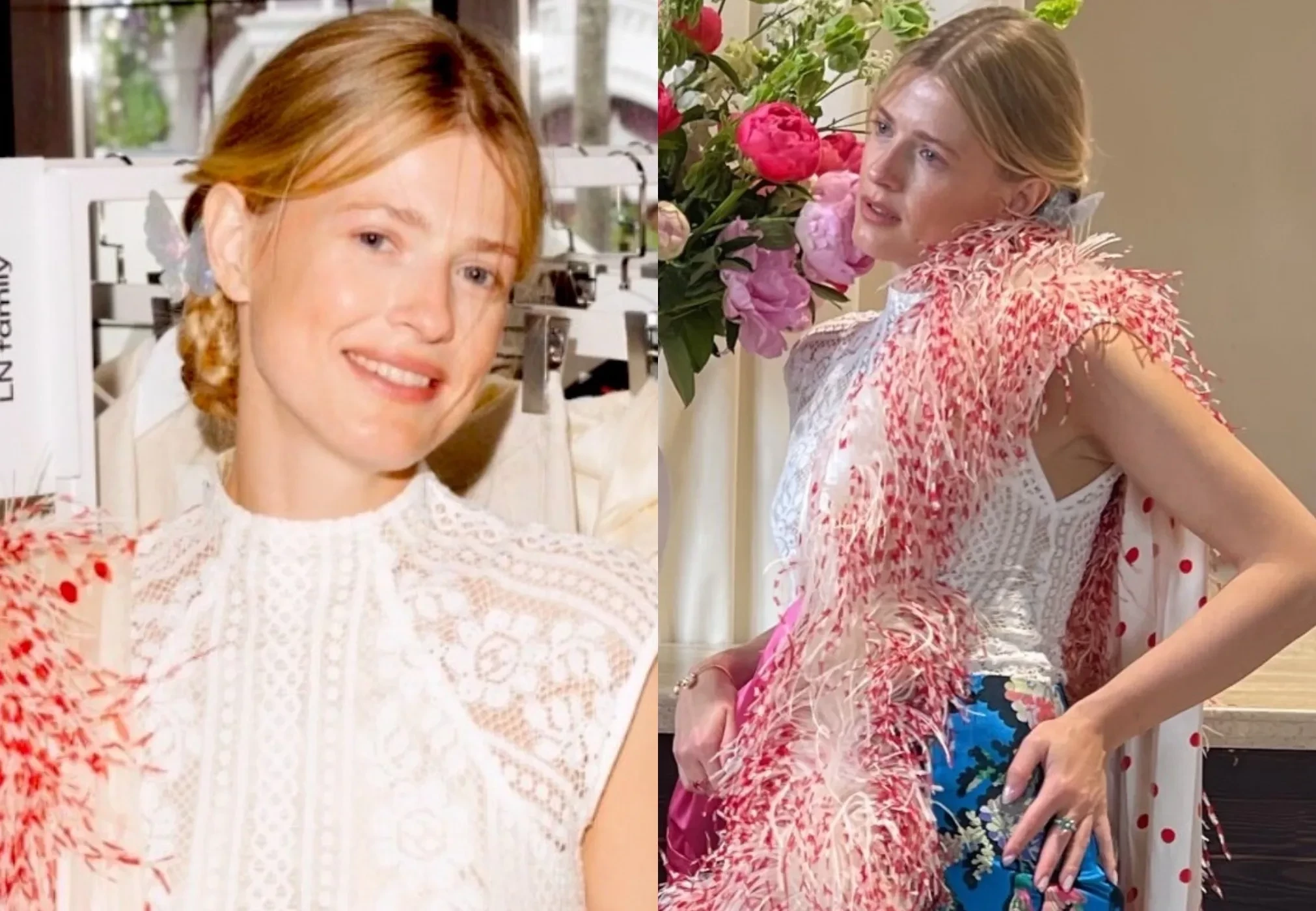 Софья Эрнст вышла в свет в боа с перьями и кружевном топе