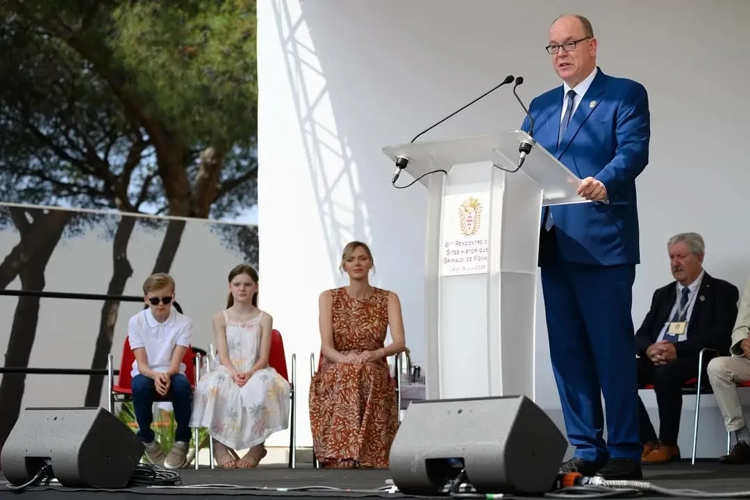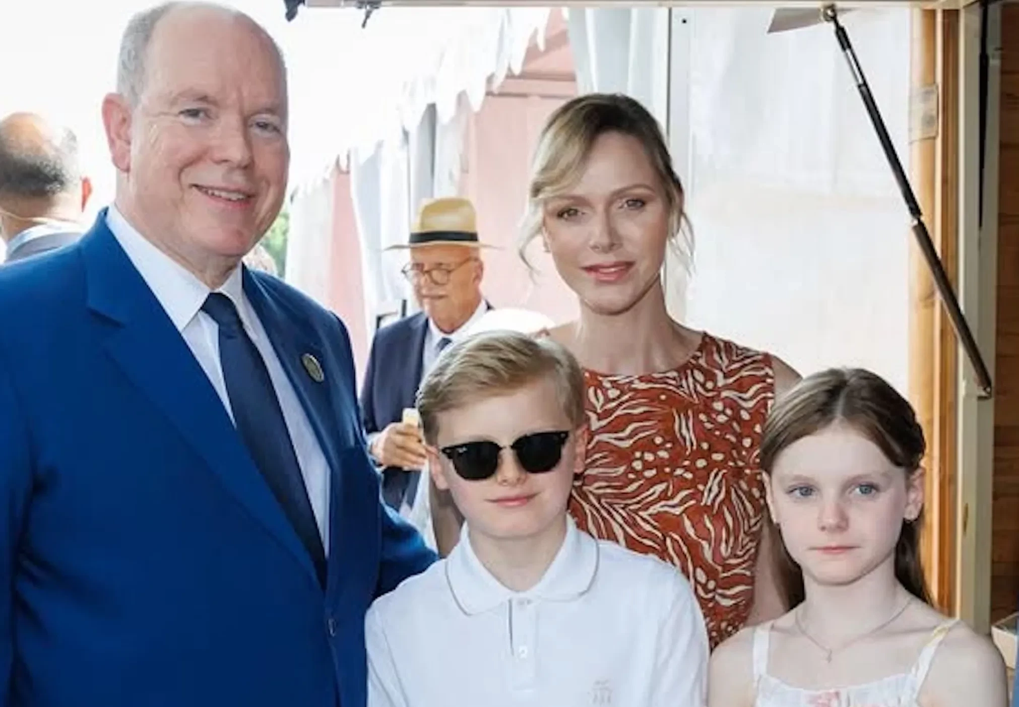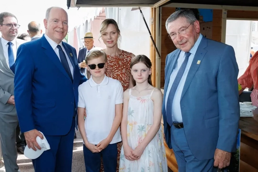 47-летняя княгиня появилась на публике в длинном коричневом платье с узором, а 67-летний князь надел синий костюм с галстуком. 10-летний сын супругов, наследный принц Жак, позировал фотографам в белом поло, джинсах и солнцезащитных очках, а его сестра-близнец, принцесса Габриэлла, в белом сарафане.