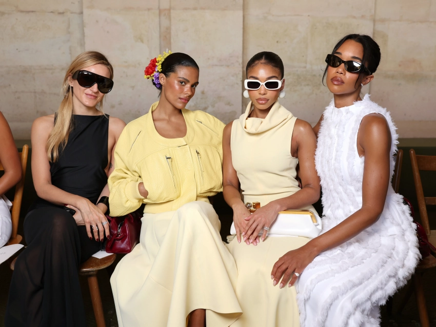 Тина Кунаки (по центру слева) с подругами на показе Jacquemus
