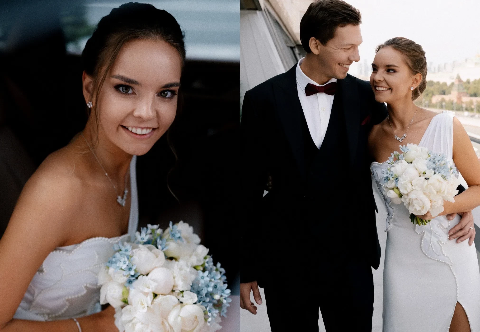 Сегодня в сети появились новые снимки со свадебной фотосессии и из ЗАГСа: фотосессия молодожёнов прошла в отеле "Балчуг Кемпински". На снимках невеста позирует в платье с разрезом бренда "Хохлома x Алёна Ахмадуллина" и в украшениях Mercury.