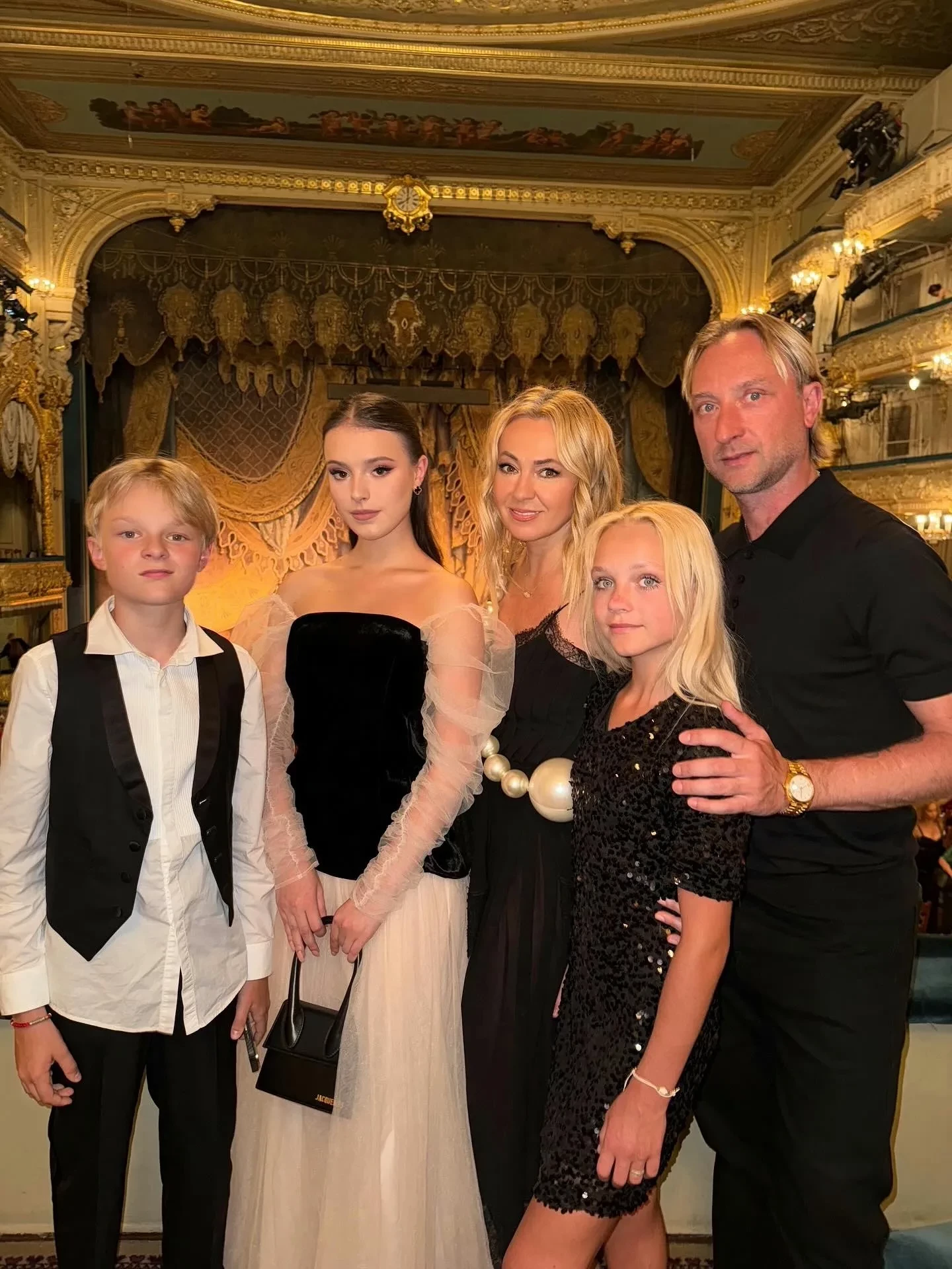 Яна Рудковская посетила Мариинский театр вместе с семьёй и фигуристками Анной Щербаковой и Еленой Костылевой