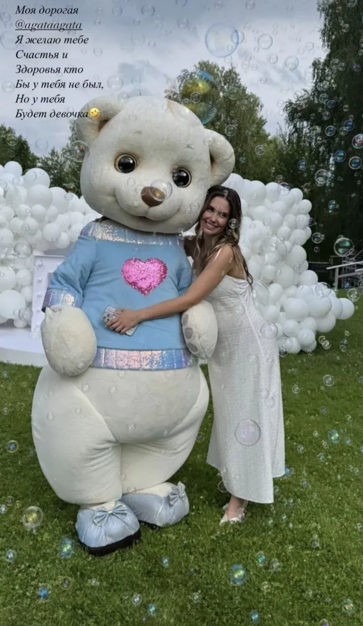 Поклонники обратили внимание на то, что после того как гостям вечеринки сообщили пол ребёнка, Муцениеце начала обнимать ростовая кукла в виде зайчихи в розовой пачке. "Счастья и здоровья, кто бы у тебя ни был. Но у тебя будет девочка", — написала в инстаграме* одна из её подруг, которая присутствовала на гендер-пати (стоит отметить, что сторис* она опубликовала до момента официального объявления пола ребёнка).