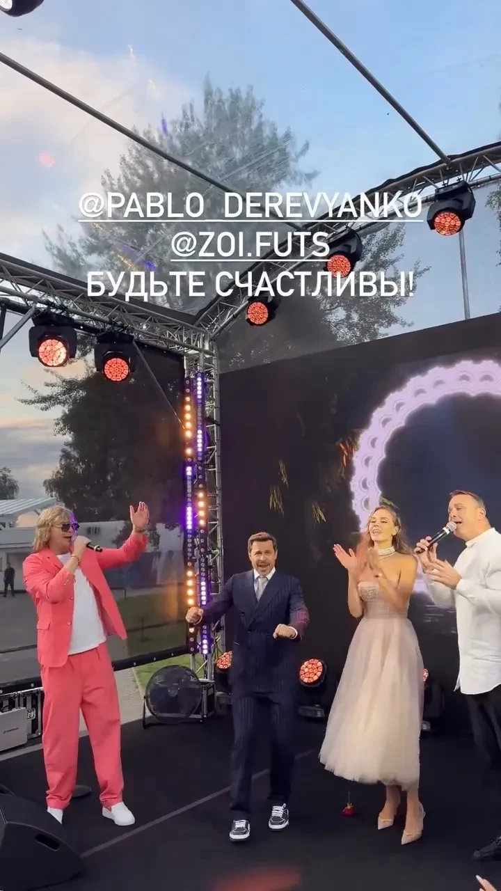 https://t.me/spletnik2006/37422Для второй части торжества Зоя сменила кружевной наряд на более практичное пудровое платье, в котором было бы удобно отдыхать. Ведущим церемонии стал Михаил Галустян, а на сцене зажгли Иванушки International (которых особенно ждала 34-летняя невеста — вместе с группой она с энтузиазмом исполняла практически все хиты), Uma2rman и Pizza. Среди звёздных гостей тоже было на кого посмотреть: на торжестве были замечены писатель Александр Цыпкин, продюсер Данила Шарапов, предприниматель Анатолий Сульянов, актёры Гоша Куценко, Никита Ефремов, новоиспечённый отец Артём Ткаченко, Игорь Жижикин и многие другие.