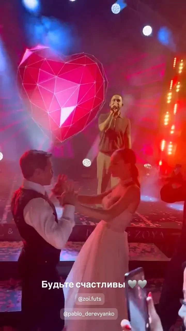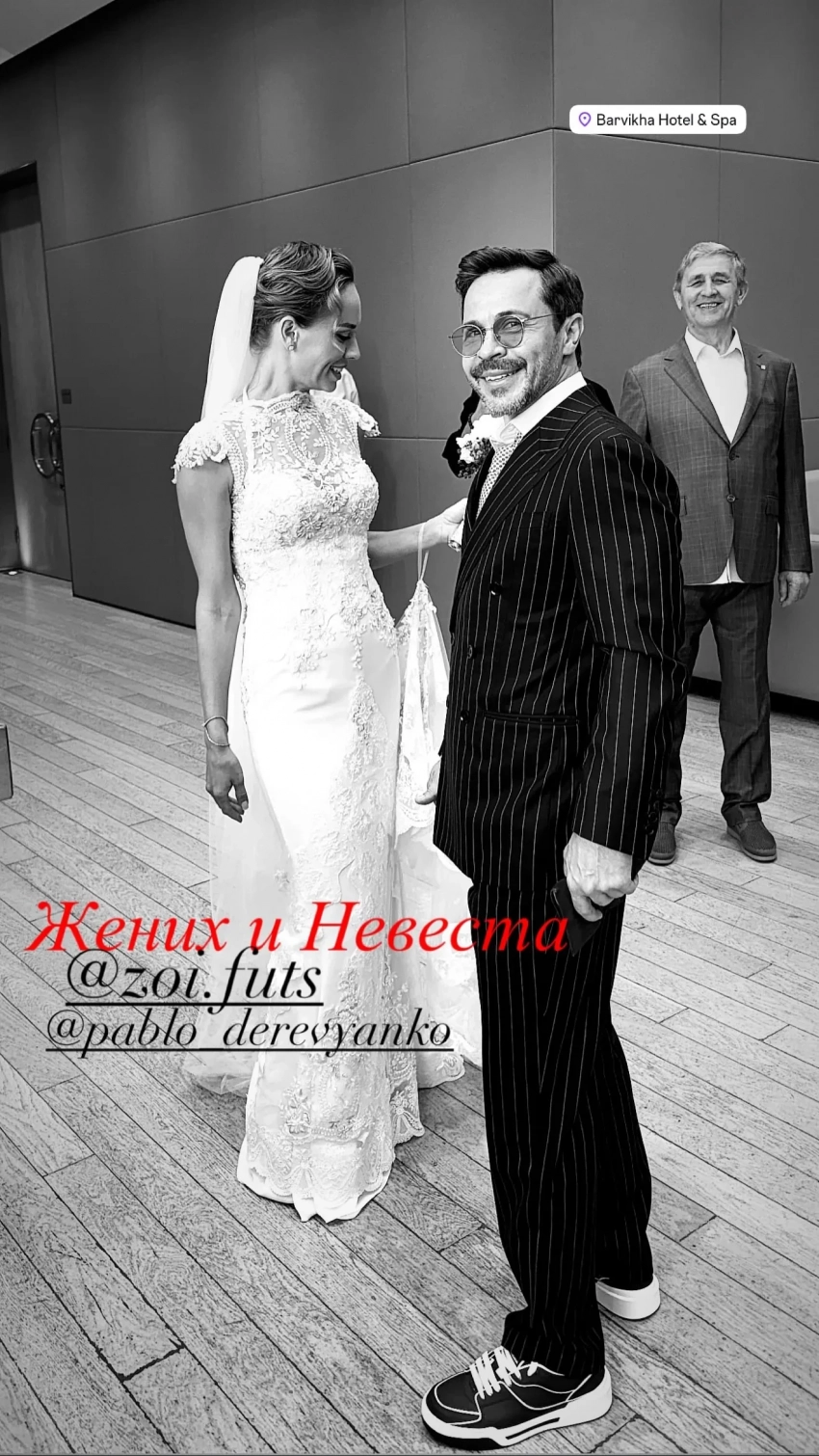 Свадьба Павла Деревянко и Зои ФуцьНапомним, Павел сделал предложение Зое в мае этого года, прямо на поле "ВТБ Арены" перед матчем "Динамо" — "Акрон". До свадьбы пара встречалась около двух лет, регулярно выходила в свет и делилась совместными фото. Незадолго до этого романа Деревянко расстался с Дарьей Мясищевой после почти 10 лет отношений, объяснив разрыв своей полигамностью.