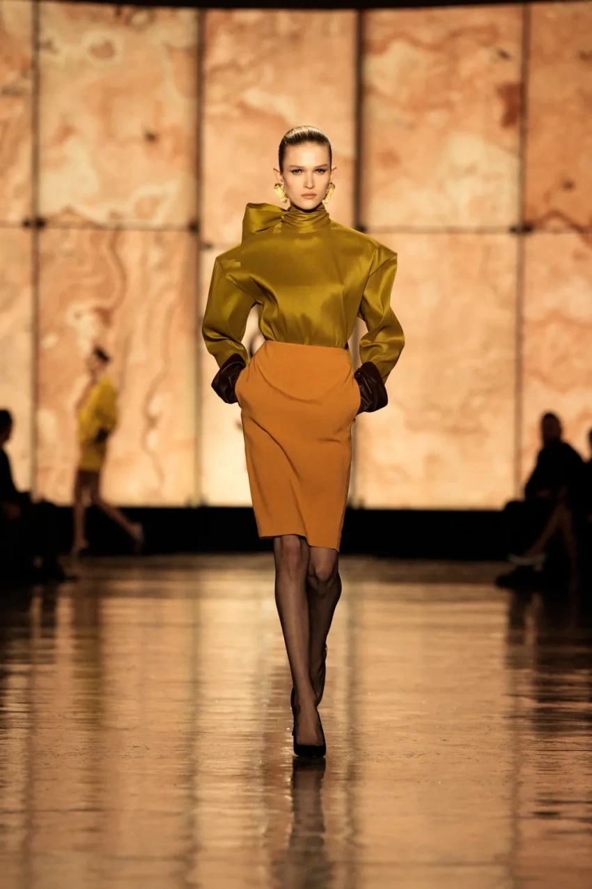 Зои Кравиц/Фото: Pascal Le Segretain/Getty ImagesЗои Кравиц/Фото: Pascal Le Segretain/Getty ImagesХейли Бибер/Фото: Pascal Le Segretain/Getty ImagesХейли Бибер/Фото: Pascal Le Segretain/Getty ImagesРози Хантингтон-Уайтли/Фото: Pascal Le Segretain/Getty ImagesРози Хантингтон-Уайтли/Фото: Pascal Le Segretain/Getty ImagesКейт Мосс/Фото: Pascal Le Segretain/Getty ImagesКейт Мосс/Фото: Pascal Le Segretain/Getty ImagesЛила Мосс/Фото: Pascal Le Segretain/Getty ImagesКарла Бруни/Фото: Pascal Le Segretain/Getty ImagesКарла Бруни/Фото: Pascal Le Segretain/Getty ImagesХлоя Севиньи/Фото: Pascal Le Segretain/Getty ImagesЛинда Евангелиста/Фото: Pascal Le Segretain/Getty ImagesЛинда Евангелиста/Фото: Pascal Le Segretain/Getty ImagesМатильда Пино/Фото: Pascal Le Segretain/Getty ImagesЗои Салдана/Фото: Pascal Le Segretain/Getty ImagesШарлотта Генсбур/Фото: Pascal Le Segretain/Getty ImagesЭльза Хоск/Фото: Pascal Le Segretain/Getty ImagesКатрин Денёв/Фото: Pascal Le Segretain/Getty ImagesCharlie XCX/Фото: Pascal Le Segretain/Getty ImagesАмелия Грей/Фото: Pascal Le Segretain/Getty ImagesАйрис Лоу/Фото: Pascal Le Segretain/Getty ImagesВ новом сезоне креативный директор Saint Laurent Энтони Ваккарелло ссылался на кутюрные коллекции Ива Сен-Лорана 1990-х годов. Модели дефилировали в пальто, платьях и блузах с квадратными плечами, что свойственно эстетике бренда. Акцентами образов стали пояса на бёдрах, завязанные в виде бантов, массивные серьги, платья из лаковой кожи с леопардовым и цветочным принтами, комплекты из кружева, пышные юбки в пол в сочетании с кожаными куртками.
