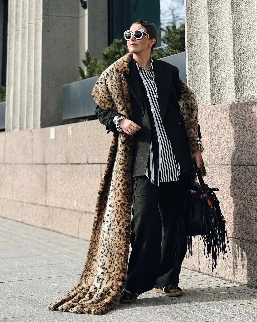 Супруги заселились в "Гранд Отель Мойка 22", посетили спектакль "Холопы" в театре БДТ, билеты на который раскуплены на месяцы вперёд, оценили новый местный ресторан и сходили в бар. Ксения гуляла по городу в леопардовом шарфе Nо. 21, кроссовках Adidas и с сумкой Hermes Birkin, а в театр надела асимметричную юбку с серой рубашкой.