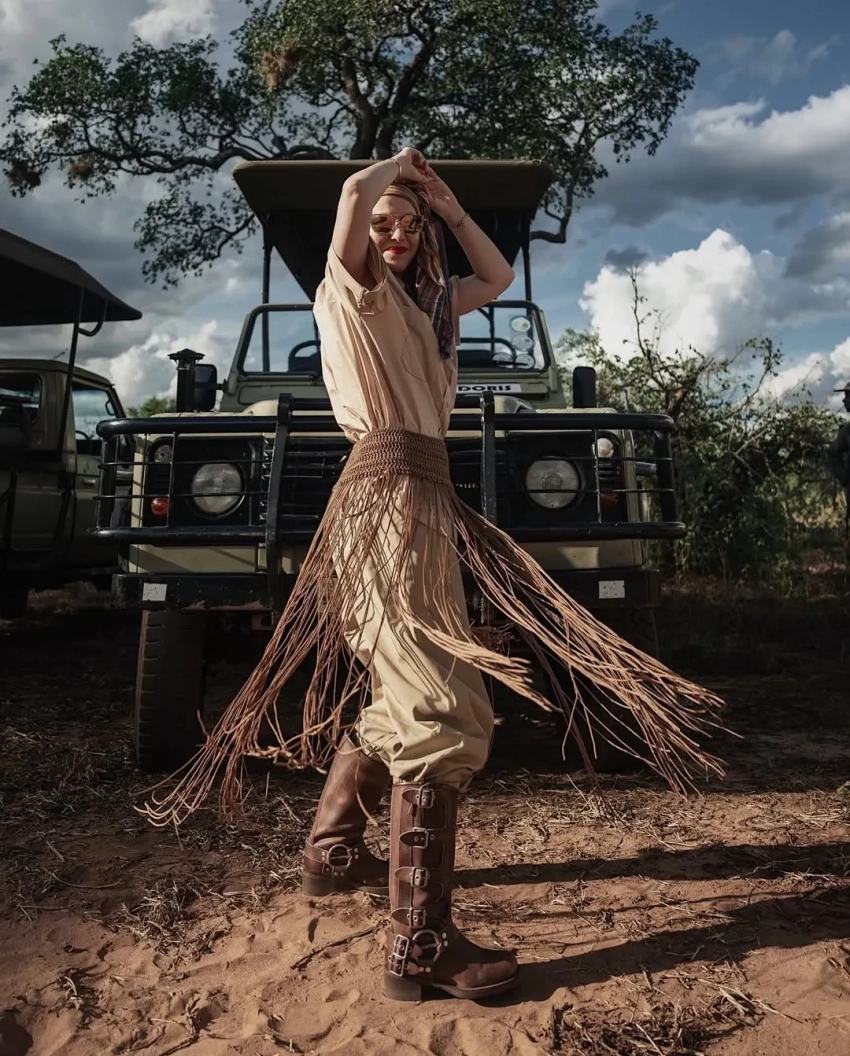 43-летняя журналистка с сыном от экс-супруга Максима Виторгана снова посетили сафари, позировали на фоне самолёта и местной природы, а Ксения нашла повод в поездке выгулять модные образы.