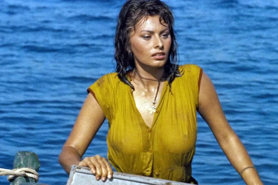 Кадр из фильма «Мальчик на дельфине». Софи Лорен в «мокром» платье, которое сводило с ума мужчин