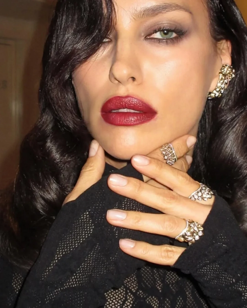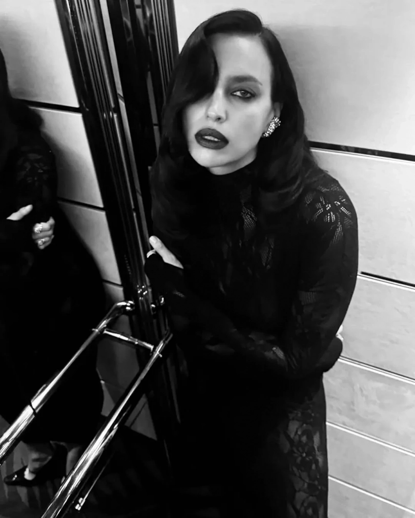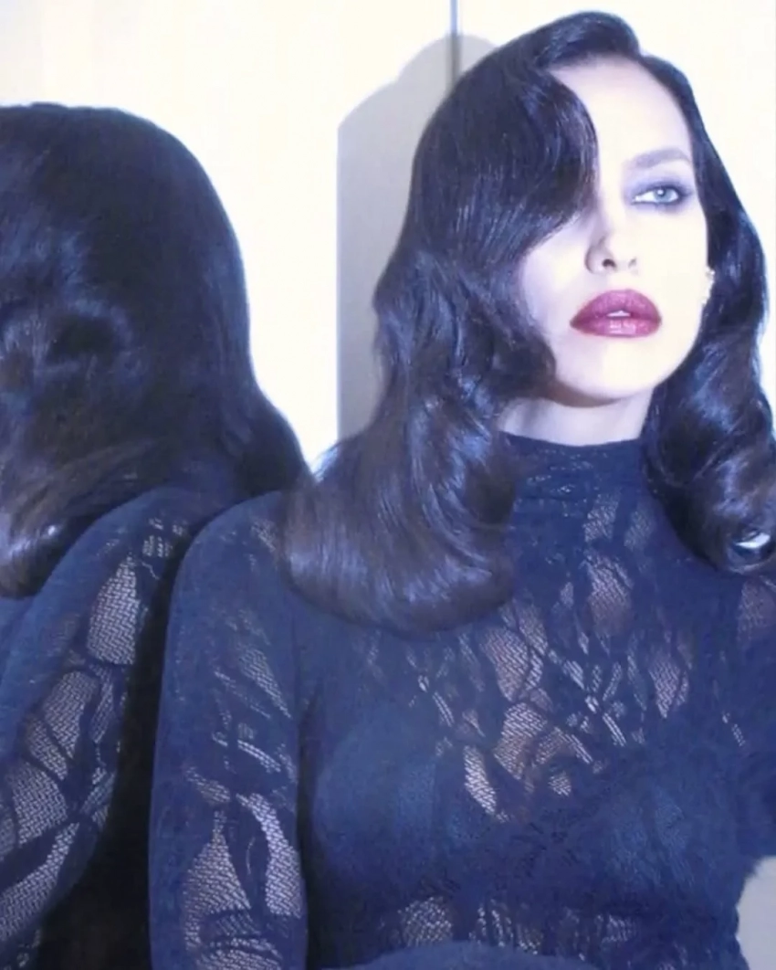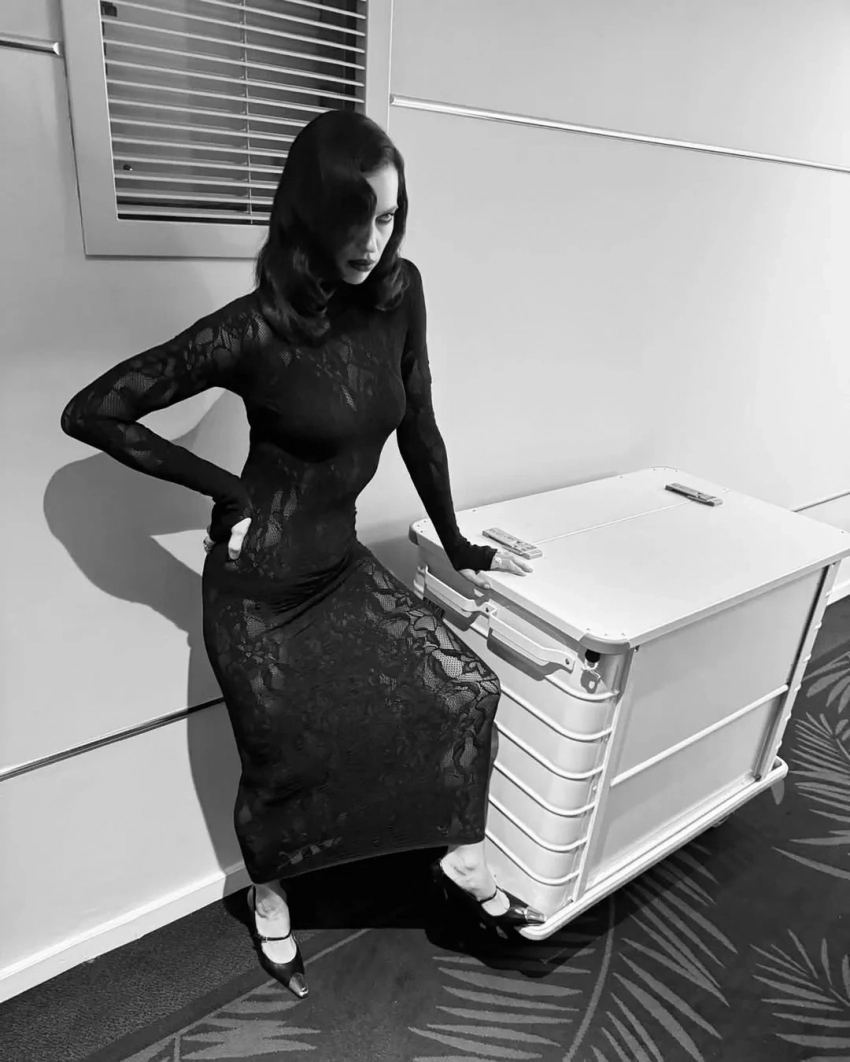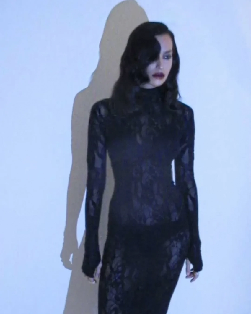 Экс-возлюбленная Брэдли Купера примерила чёрное кружевное платье Les Filles d'Eva, дополнив образ голливудской укладкой, тёмной помадой и бриллиантовыми украшениями. Модель также опубликовала снимок из постели, вероятно, сделанный после мероприятия. "Прекрасная ночь", — написала Шейк.