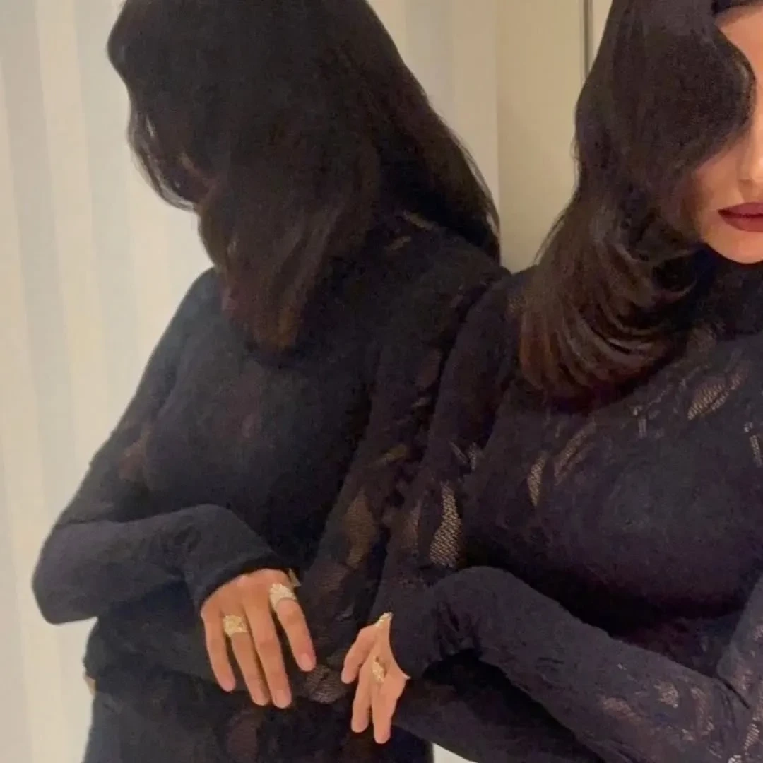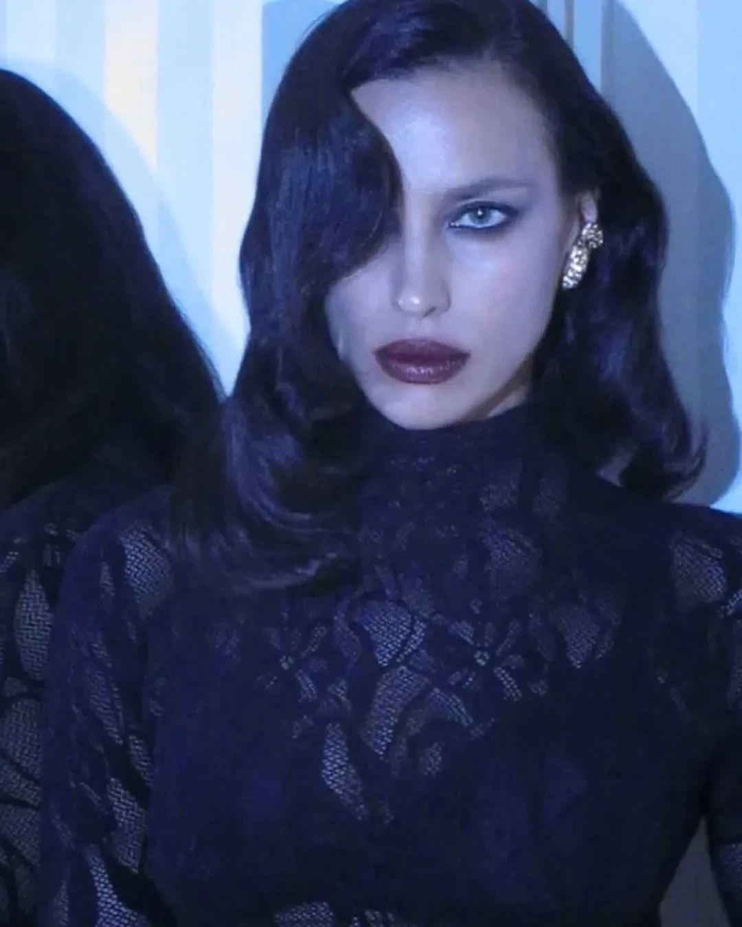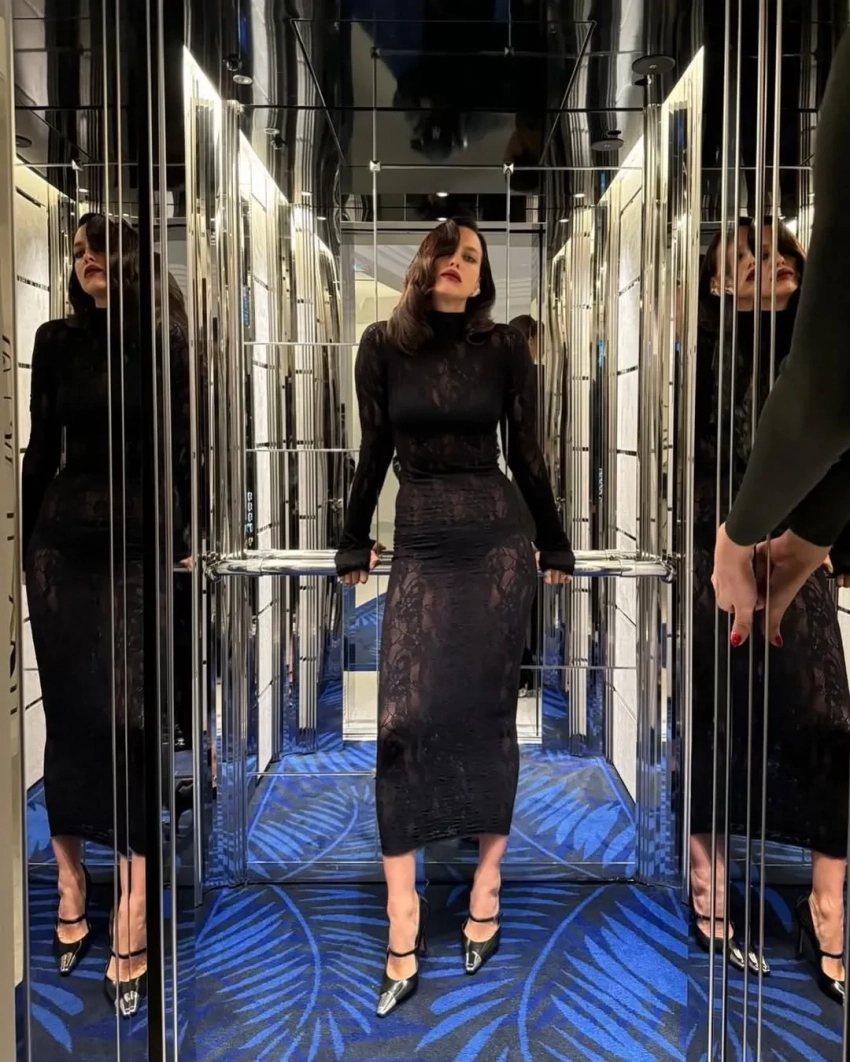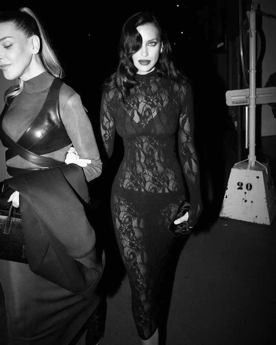 Экс-возлюбленная Брэдли Купера примерила чёрное кружевное платье Les Filles d'Eva, дополнив образ голливудской укладкой, тёмной помадой и бриллиантовыми украшениями. Модель также опубликовала снимок из постели, вероятно, сделанный после мероприятия. "Прекрасная ночь", — написала Шейк.