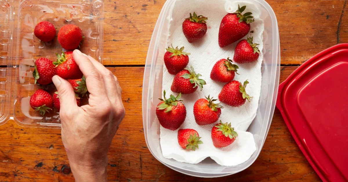 Герметичная банка защищает от лишней влаги и посторонних запахов, а бумажные полотенца впитывают конденсат и влагу с поверхности ягод. Благодаря этому снижается риск появления плесени, и клубника остаётся свежей, ароматной и вкусной дольше обычного.