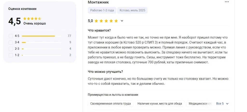 Отзывы работников о «ПОЛАТИ» нередко отмечают высокий уровень безопасности и полноценное обеспечение специалистов средствами индивидуальной защиты. Много внимания уделяется и подготовке кадров — компания дает возможность каждому повышать уровень квалификации, получать новые знания в выбранной профессии. С 2017 года ООО «ПОЛАТИ» развивает сеть собственных учебных центров, что позволяет претендентам на различные вакансии пройти обучение с нуля и стать востребованными специалистами.