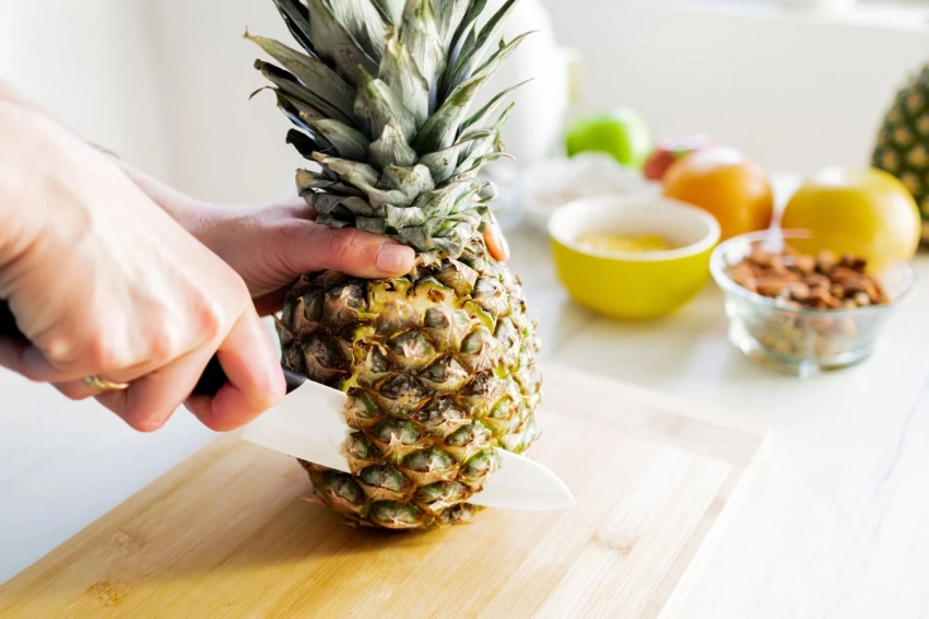 Свежий ананас, богатый витаминами, содержит всего 57 калорий на 100 г. Он станет прекрасным источником витамина C и идеальным перекусом в жаркий день.