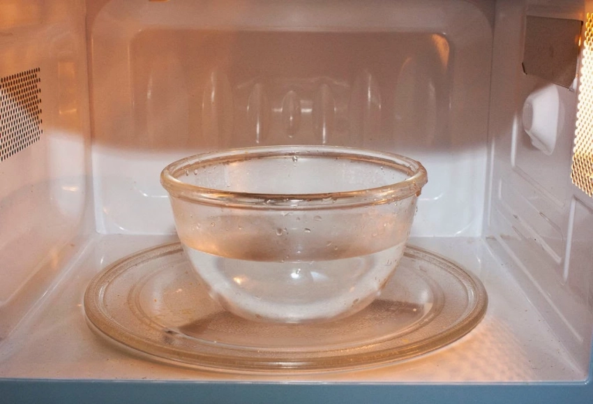 Поставьте емкость в микроволновку и нагрейте воду на высокой мощности в течение двух минут. Затем оставьте дверцу закрытой еще на две минуты. Образовавшийся пар размягчит загрязнения, и их можно будет легко удалить бумажным полотенцем или салфеткой из микрофибры.