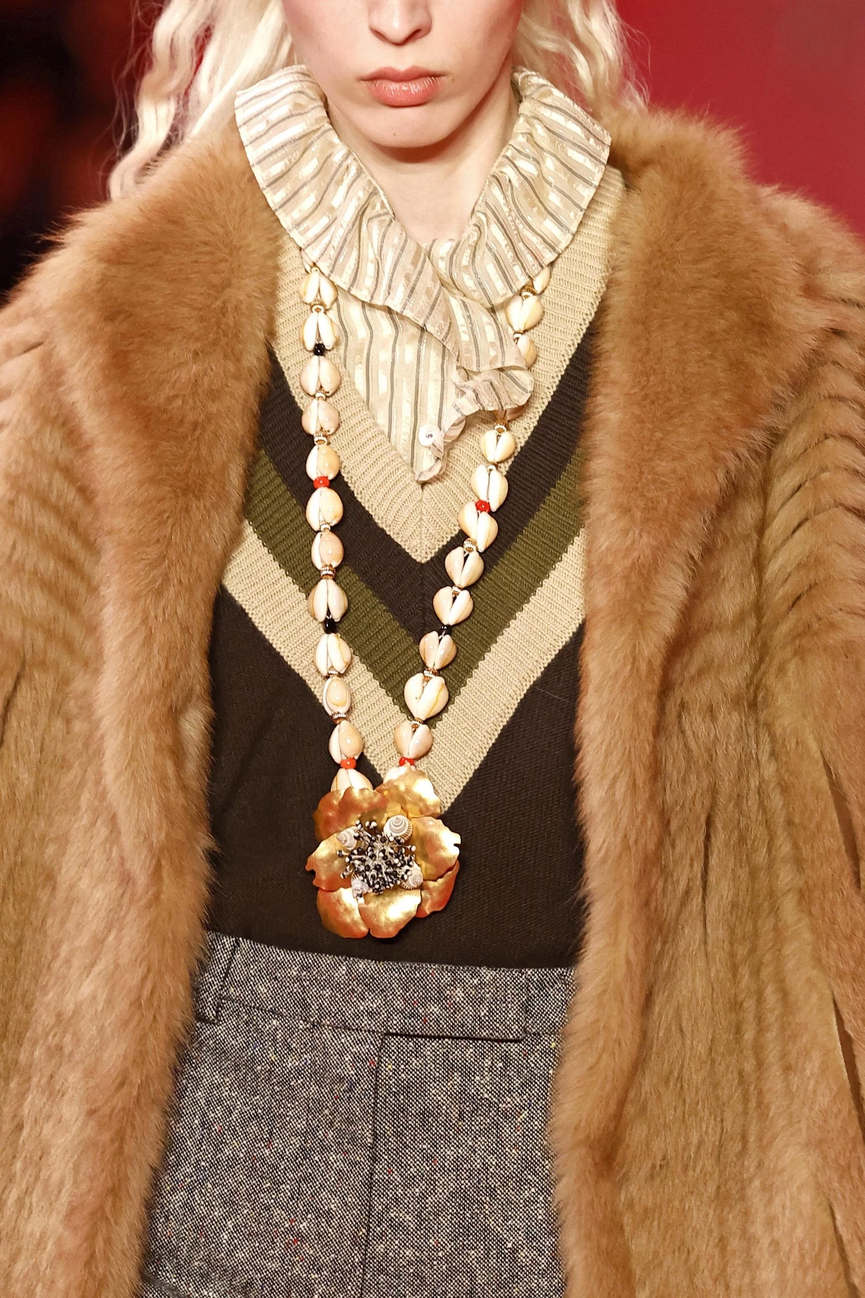 • Многослойность — сочетание нескольких массивных ожерелий, добавляющее этнические и бохо-нотки.