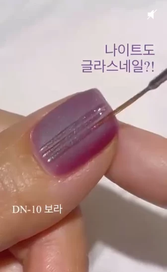 Рисуем световые полосы. Окуни тонкую кисть в прозрачную базу и аккуратно нарисуй параллельные линии на каждом ногте поверх матового покрытия. Они создадут эффект преломления света, словно на ногтях отразились неоновые лучи.