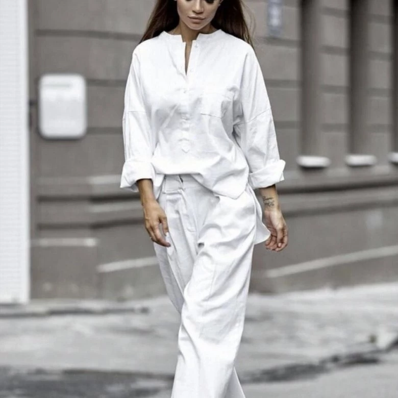 Лён — это не только про комфорт, но и про экологичную осознанность. Льняной костюм с современной посадкой можно надеть как в офис, так и на прогулку или ужин. Он не перегружает образ, позволяет коже дышать и смотрится легко, изящно. Особенно актуальны пастельные и нейтральные оттенки.